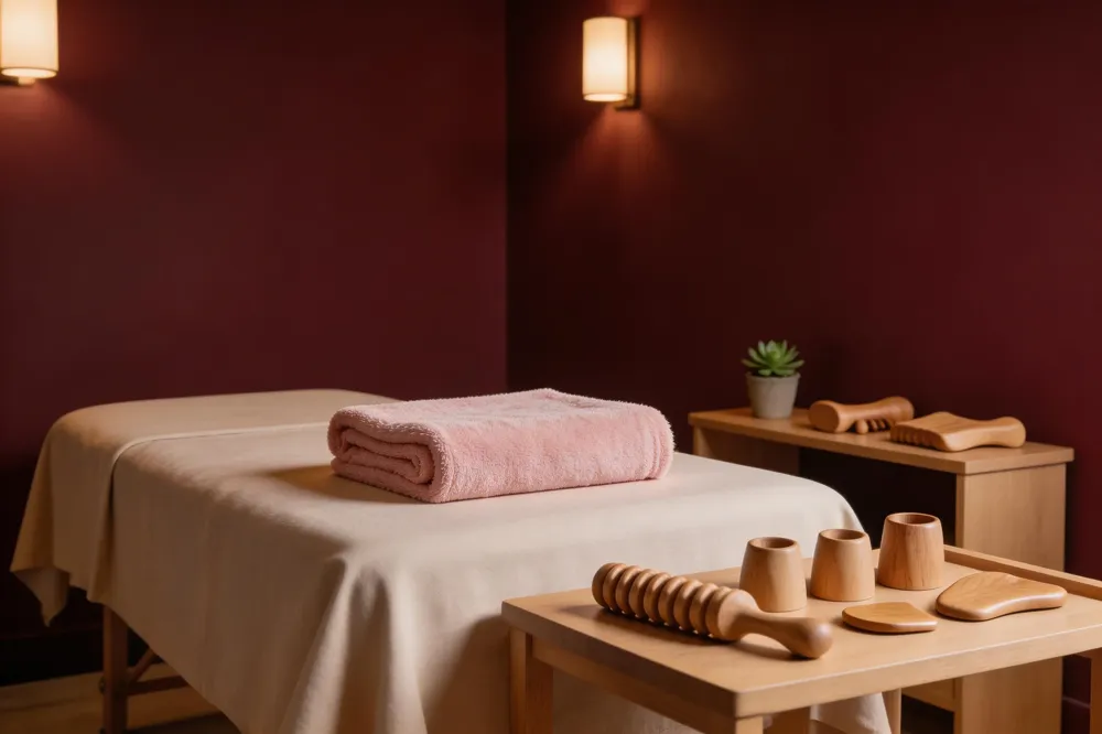 Wood therapy is a holistic, non-invasive massage technique that uses specially designed wooden tools to gently massage the body. These tools help stimulate lymphatic drainage massage flow, reduce cellulite, and enhance body contouring options by promoting circulation and encouraging the natural drainage of excess fluids. For more information on lymphatic drainage massage and its benefits, see this resource.